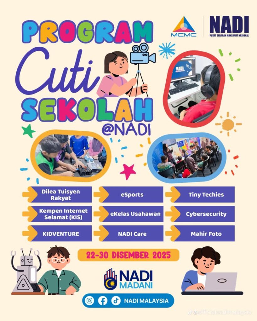 Sukacita dimaklumkan untuk adik-adik sempena cuti sekolah ini, ayuh meriahkan Program Cuti Sekolah @NADI! Pelbagai aktiviti menarik atas talian yang disediakan. Jangan lupa juga daftar untuk cabutan bertuah setiap hari program berlangsung 😍 Moga kehadiran adik-adik di NADI Kg Penjom dapat memeriahkan lagi program ini.